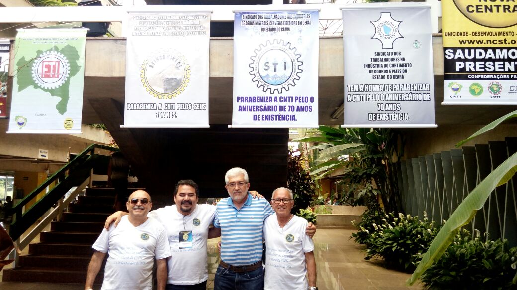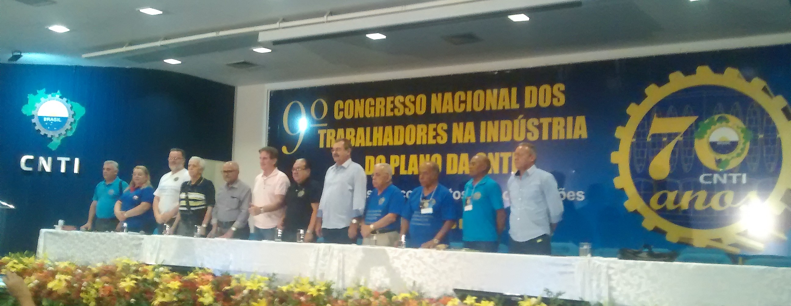 A Federação dos Trabalhadores nas Indústrias do Estado Ceará, representada pelo seu Presidente Raimundo Lopes Junior e seus Sindicatos filiados, STIBEBIDAS / STIGRAMINE / STICOUROS / STIMESTRES / STICALÇADOS JUAZEIRO, CRATO e BARBALHA / STICONFECÇÃO HORIZONTE,PACAJÚS e PACATUBA, participaram do 9º Congresso Nacional dos Trabalhadores na Indústria do Plano da CNTI, realizado de 23 a 26 de outubro, no Centro de Treinamento Educacional, em Luziânia (GO), com a participação de cerca de 700 industriários de todo o país. O evento ocorreu paralelo às comemorações dos 70 anos da Confederação. Teve como pauta a conjuntura atual e seus impactos no sindicalismo; estrutura sindical e seu custeio; relação entre capital e trabalho; perspectivas e contradições sobre a proposta de reforma da Previdência Social; igualdade de oportunidades e discriminação; e meio ambiente que, por suas peculiaridades, alcançam todos os grupos da Confederação.